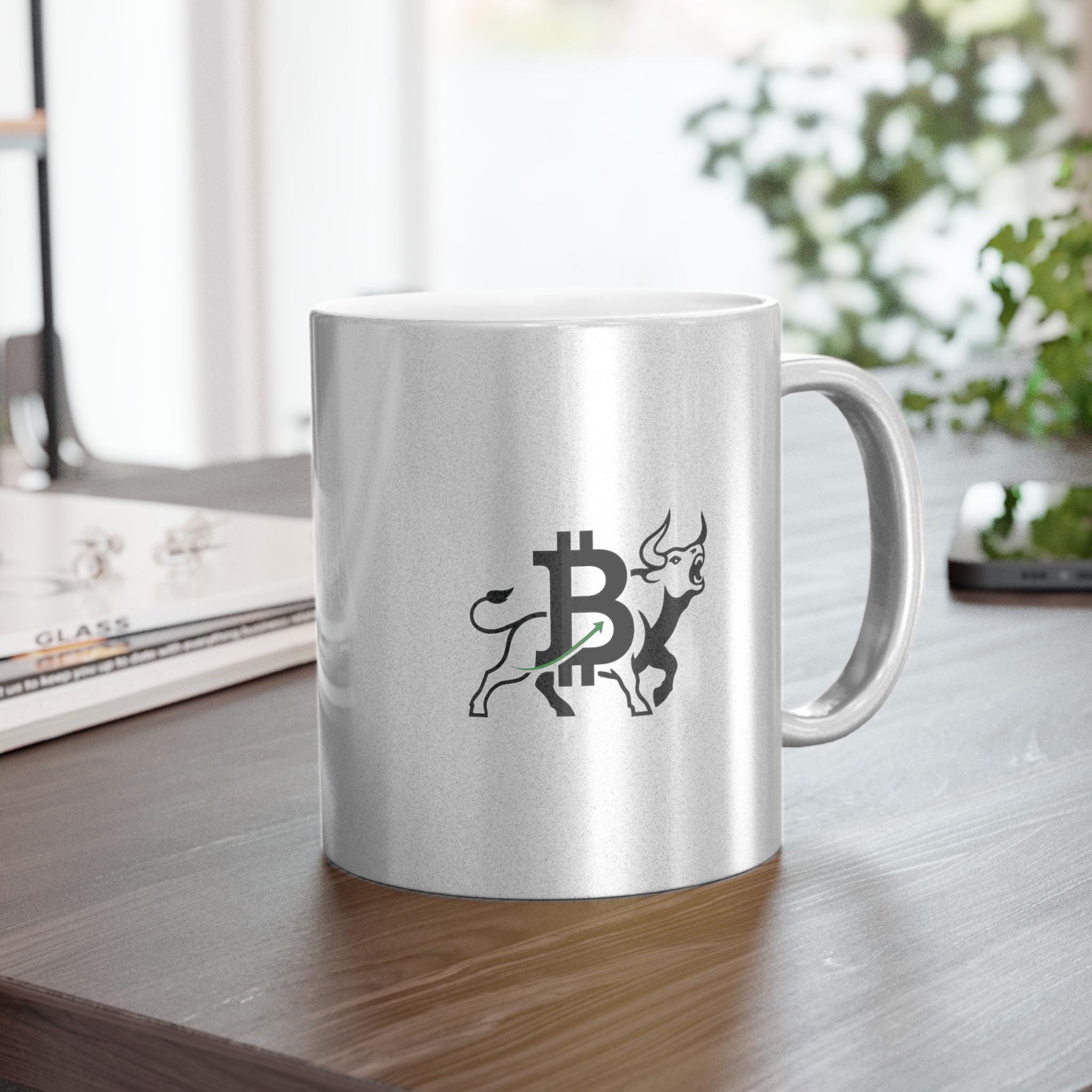 Bitcoin Bull Logo Metallic Mug | Silver Gold Coffee Cup
