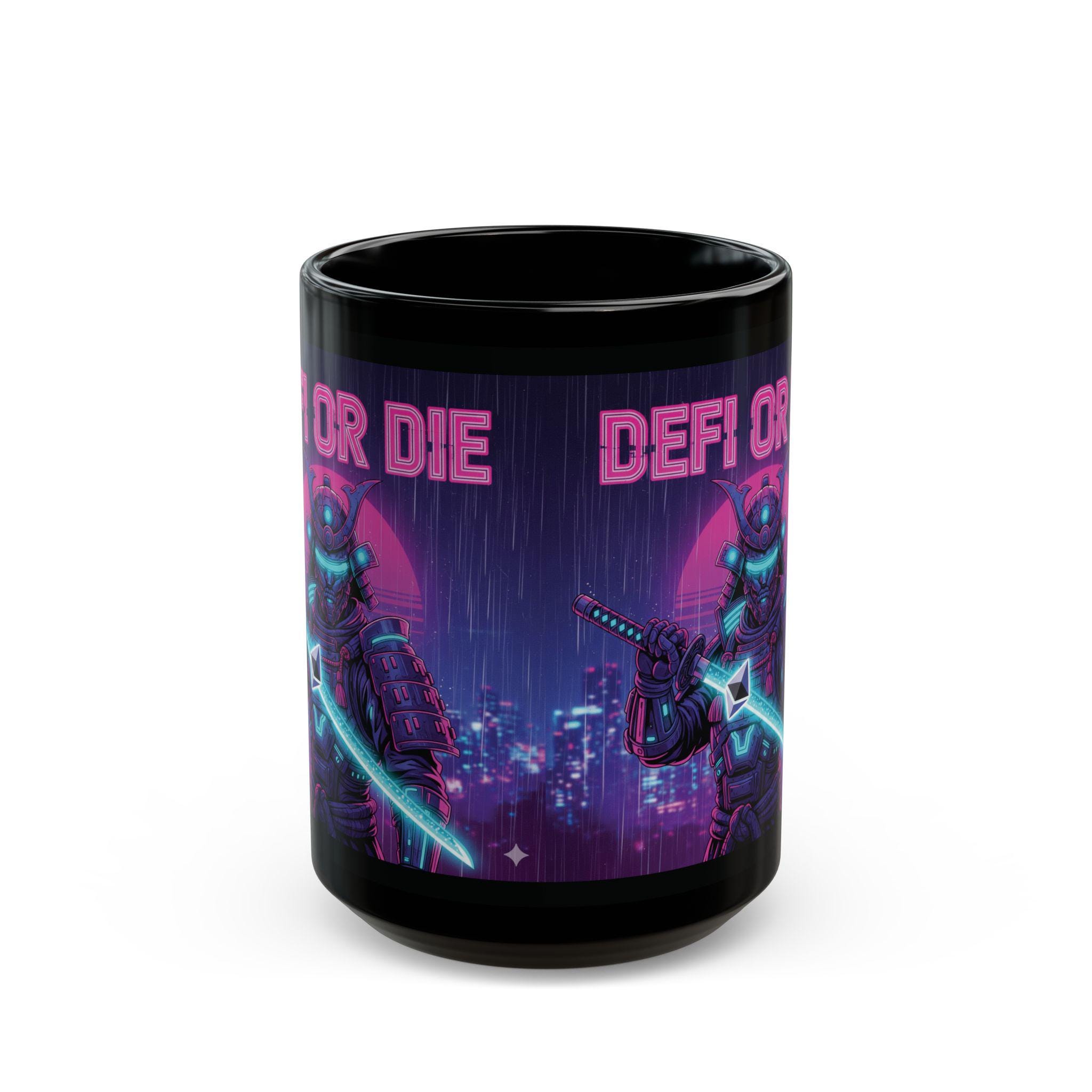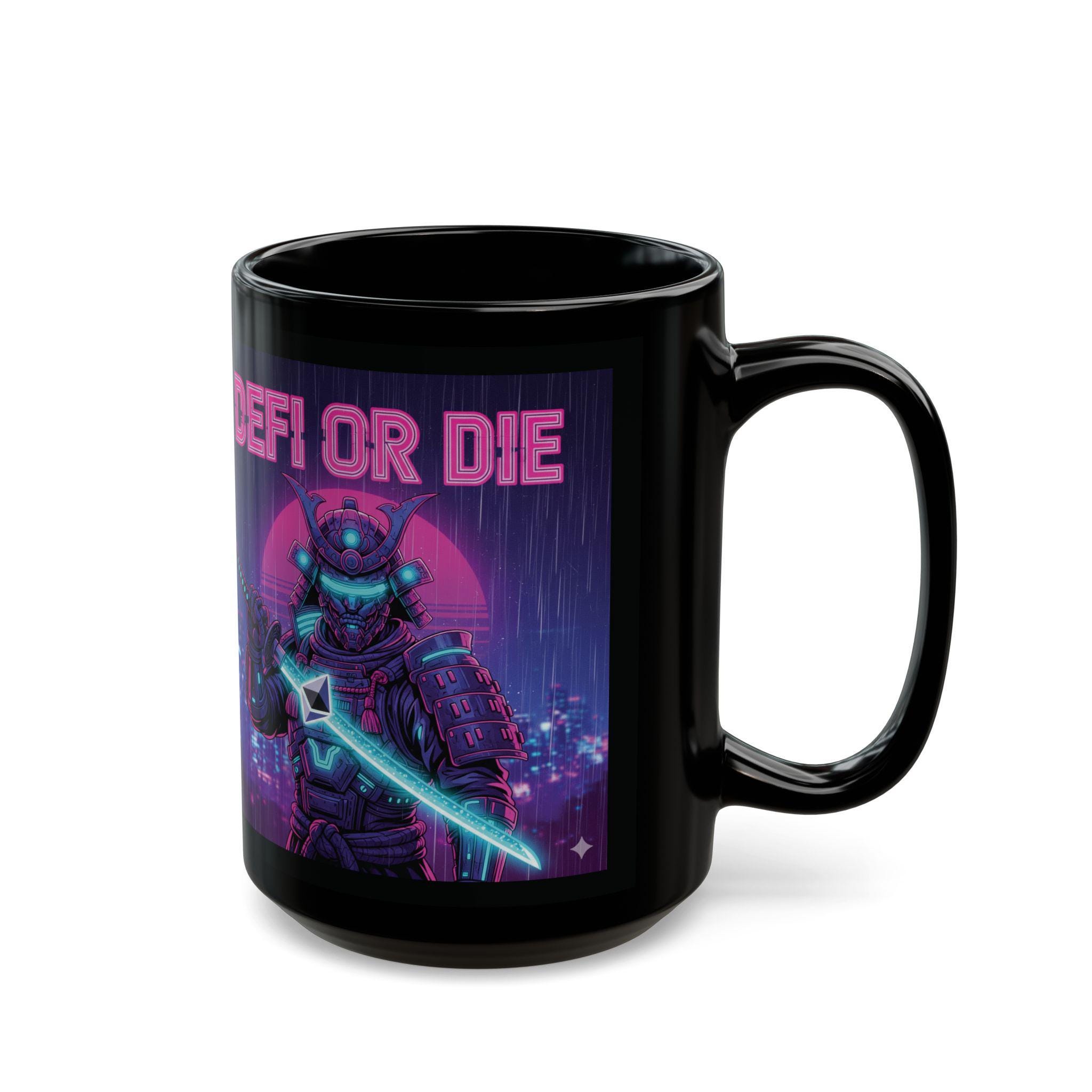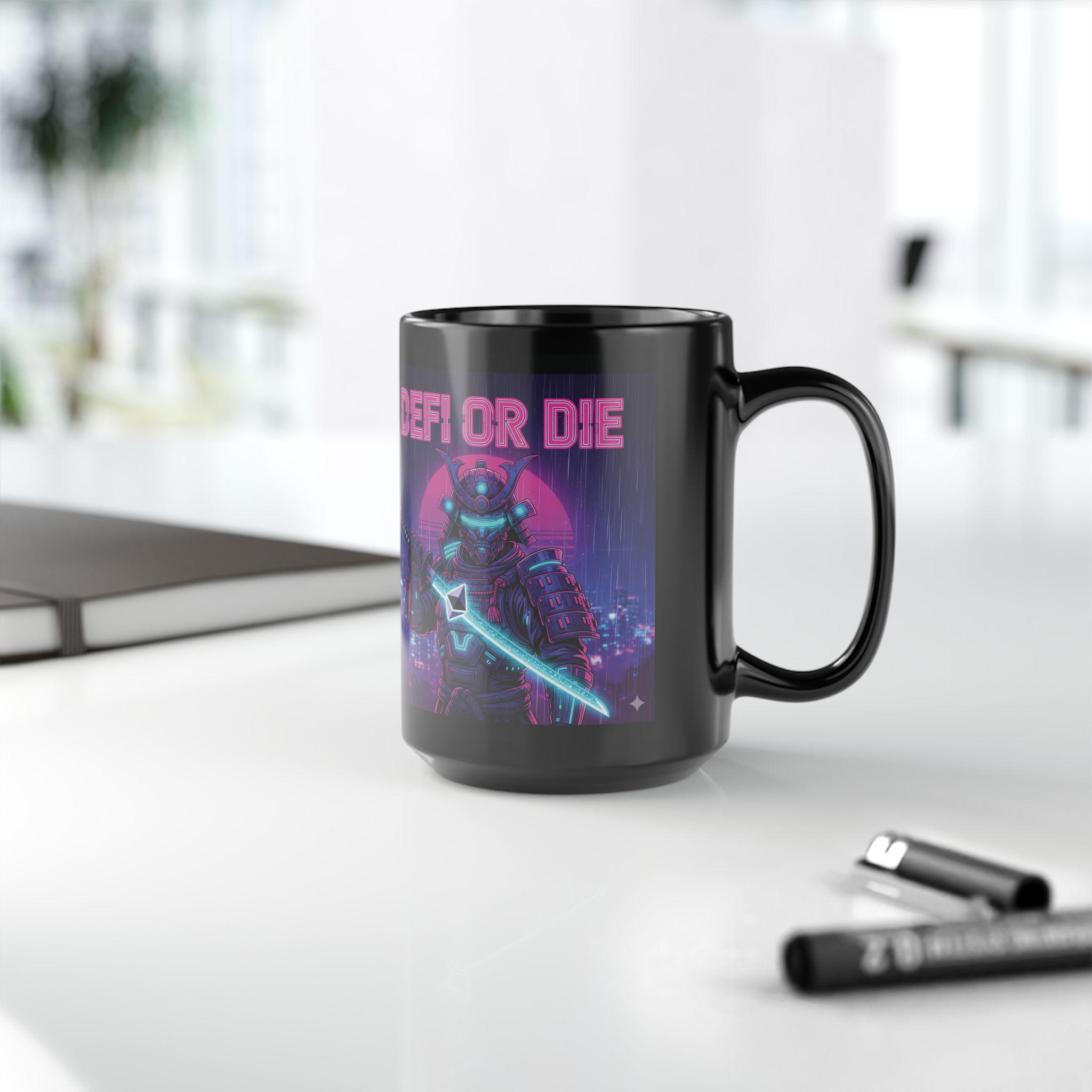 Neon Samurai Defi or Die Mug | Black Ceramic Coffee Cup