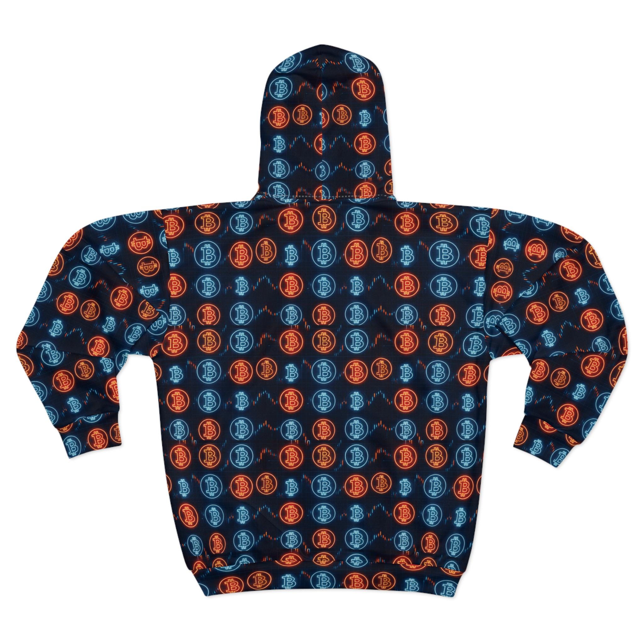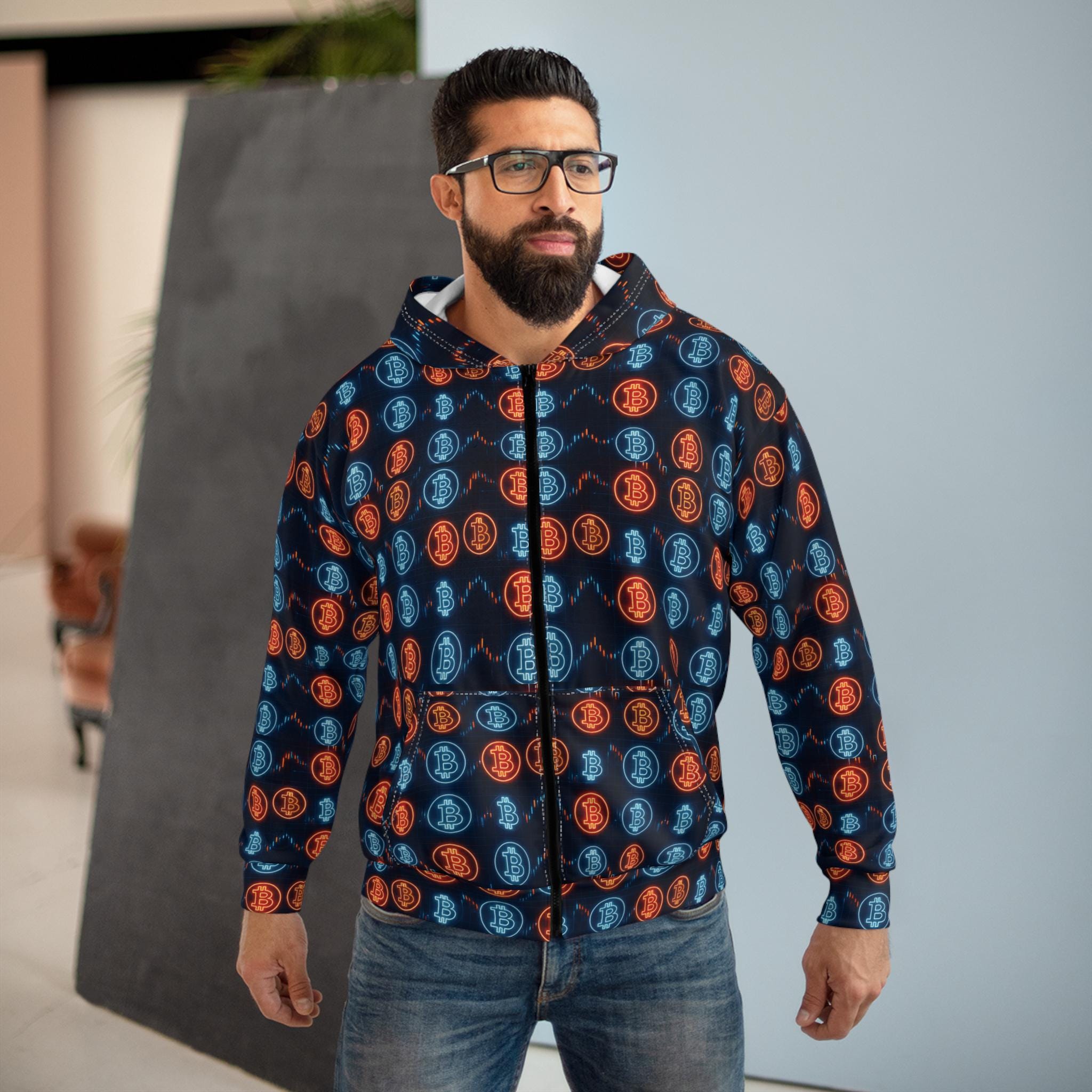 Neon Bitcoin (BTC) Print Zip Hoodie | Cryptocurrency Style