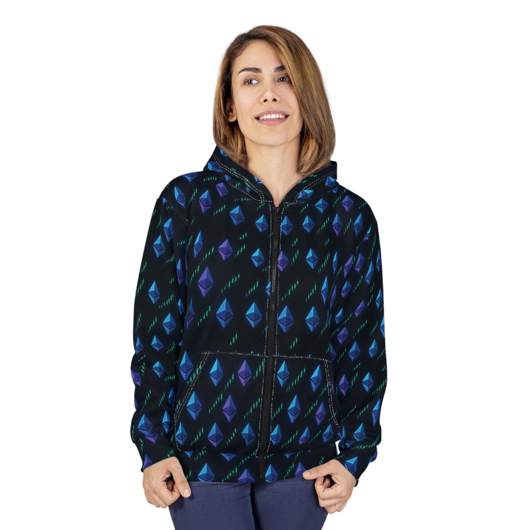 ETH Blue Teal Diamond Zip Hoodie | All-Over Print