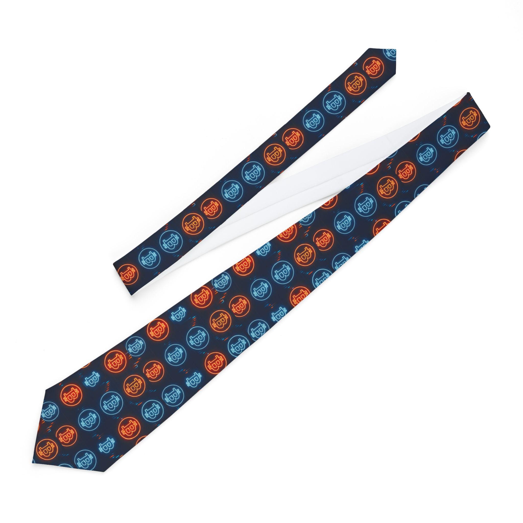 Glowing Neon Bitcoin logos Necktie | Blue and Orange Medallion Tie