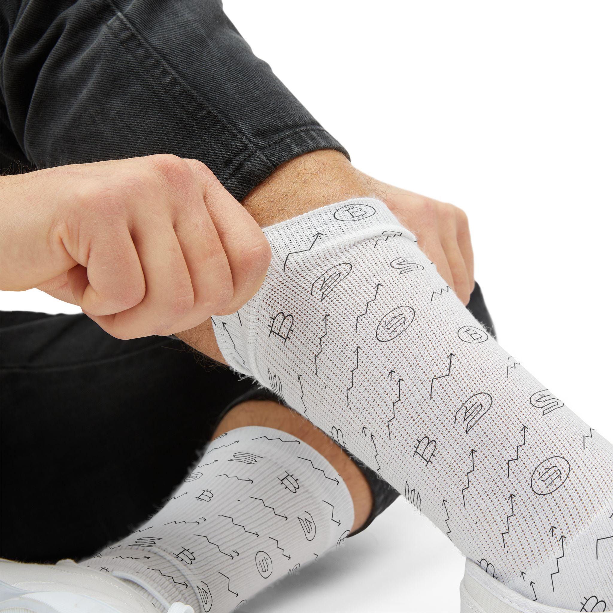 Bitcoin and Solana Symbols Sublimation Socks | Novelty Music Tech Crew Socks