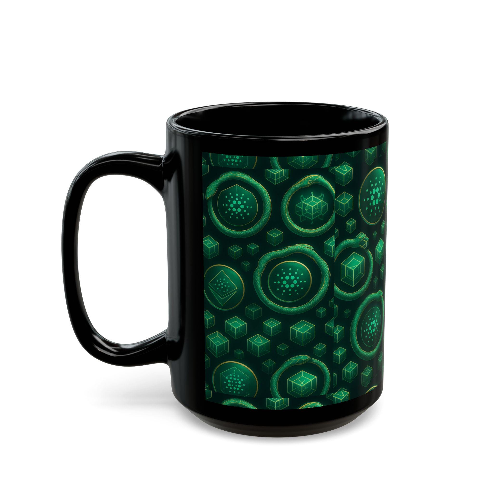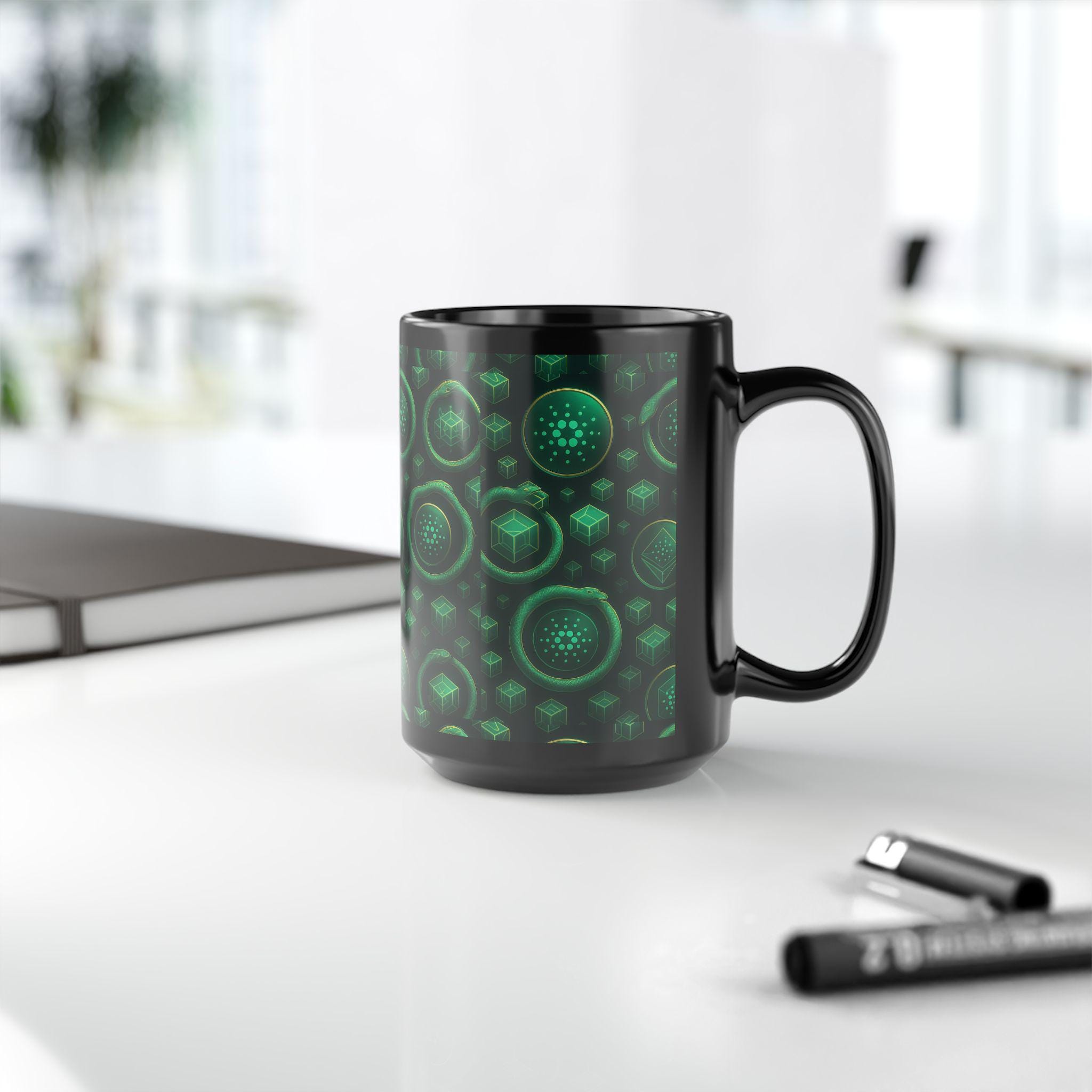 Cardano Crypto Pattern Mug | Black Ceramic Coffee Cup