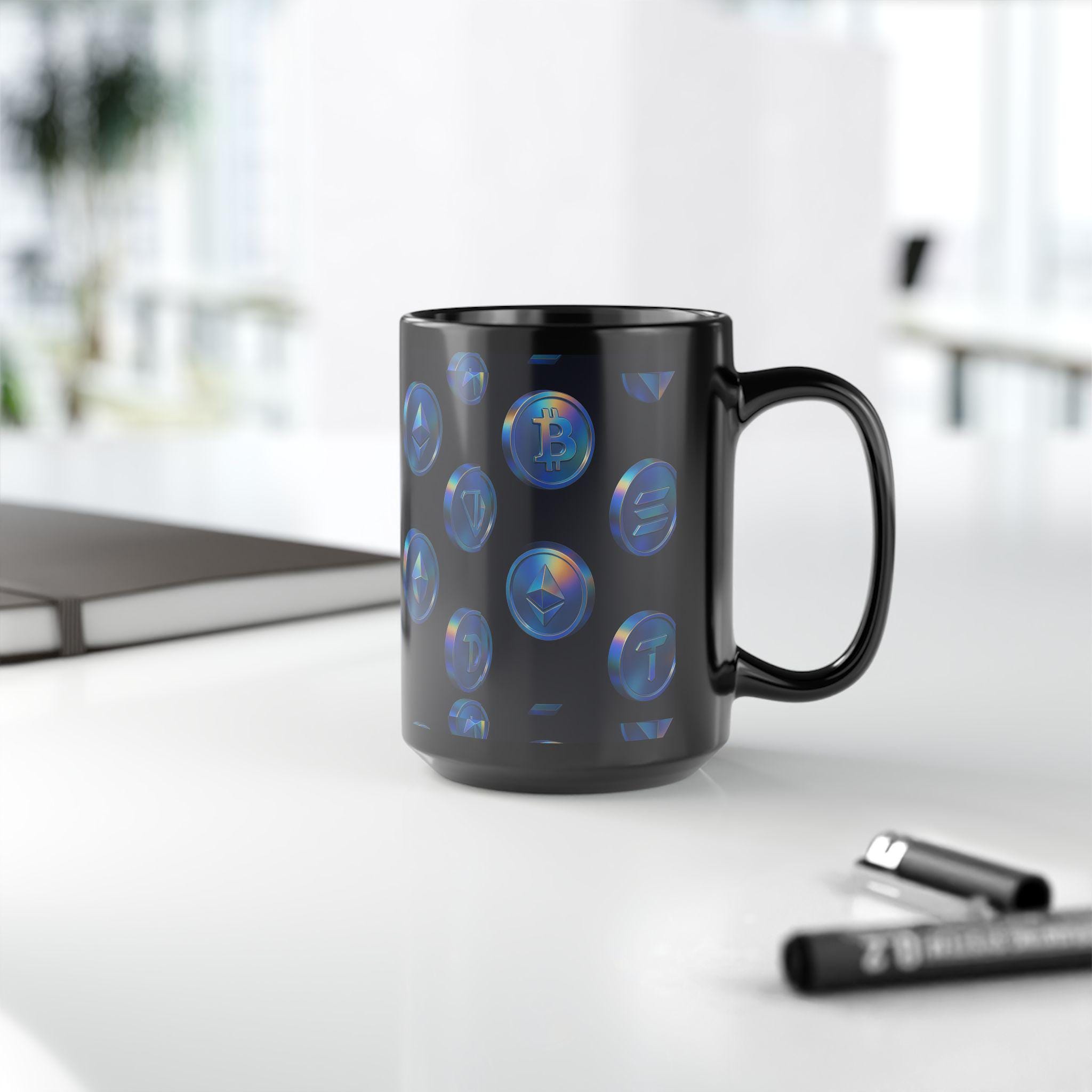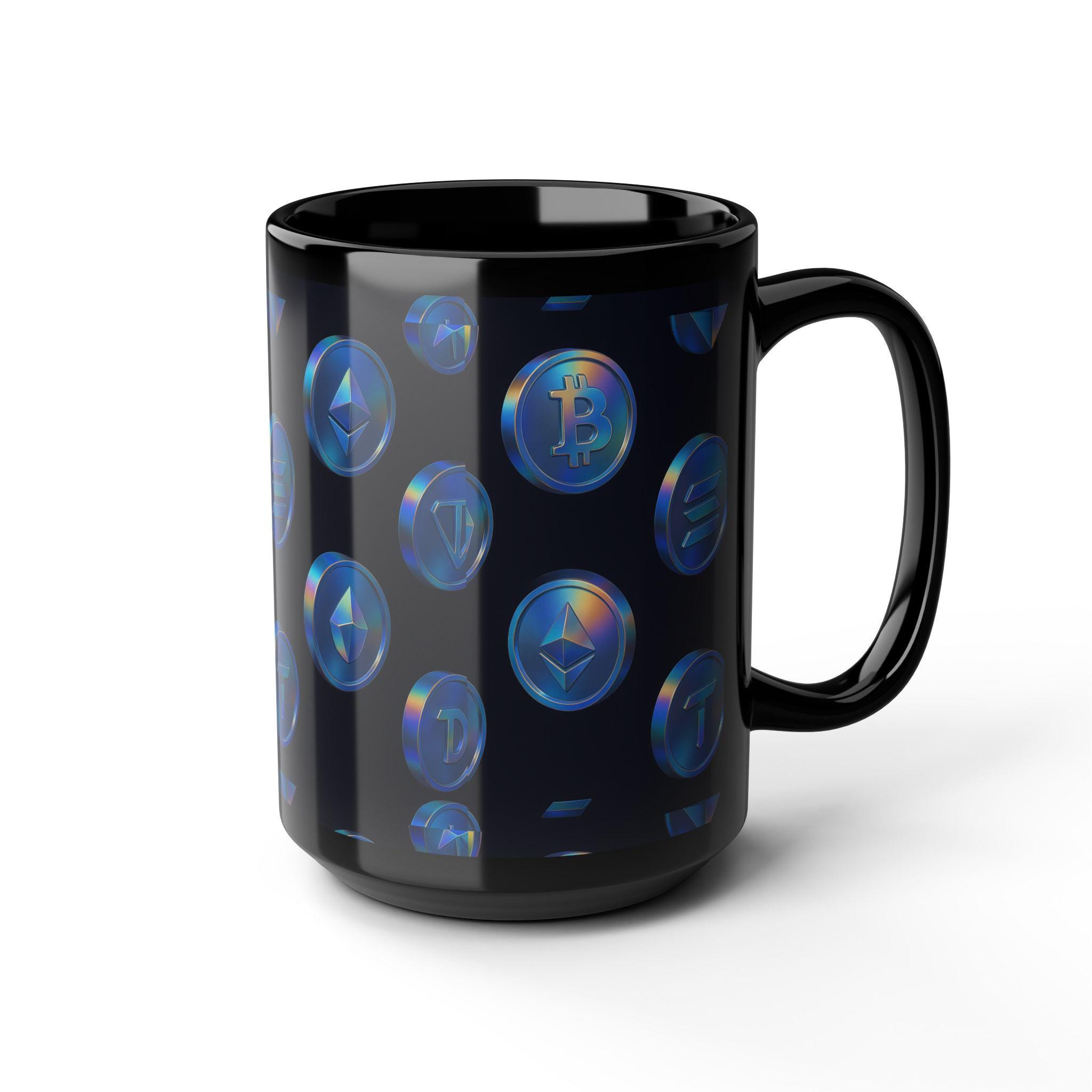 Holographic Cryptocurrency Coins Mug | Black Ceramic Coffee Cup