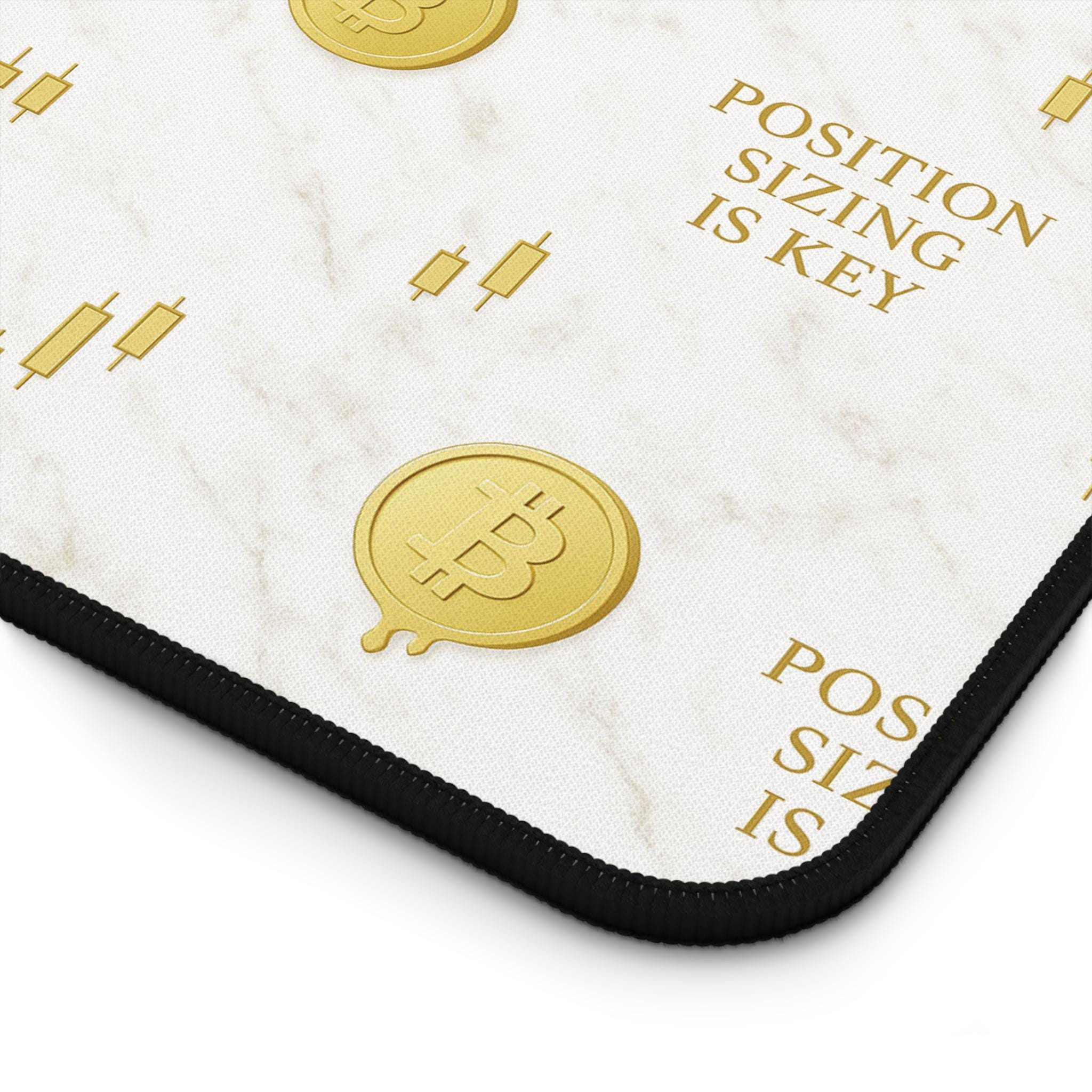 Lay out your trading plans and chart your next move on a desk mat that feels like a command center. Soft neoprene with sewn edges keeps the surface smooth and durable while the non-slip backing holds everything steady through long sessions of charting, writing, or brainstorming. The design — muted ivory with gold coin and candlestick motifs and the reminder “Position Sizing is Key” — keeps risk awareness front and center without screaming for attention. It’s the kind of workspace piece that calms the desk and sharpens focus: spread it under your keyboard, mouse, notebooks, or sketch tools and let the little details do the steadying work.