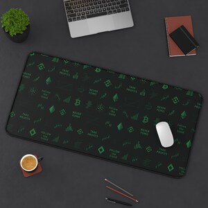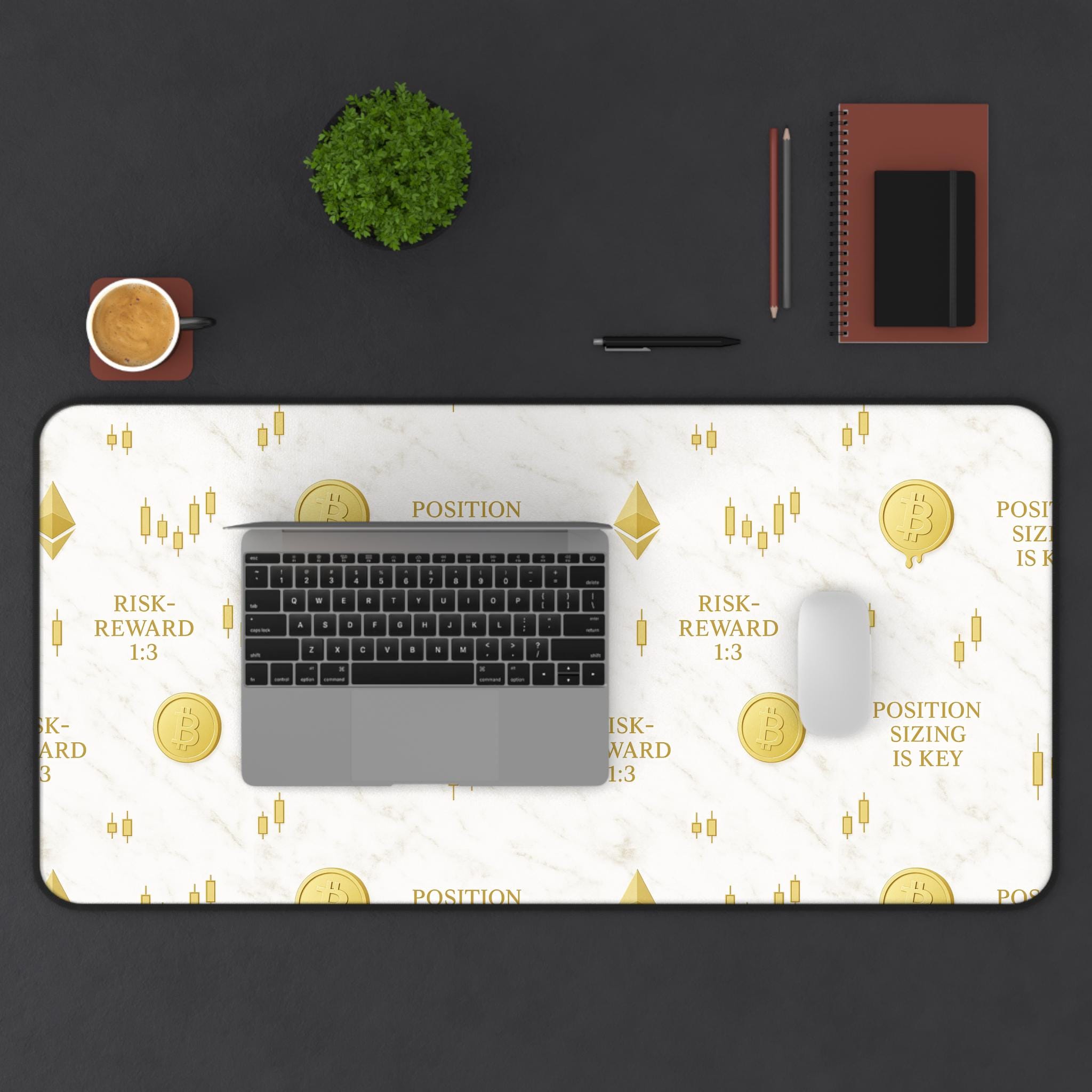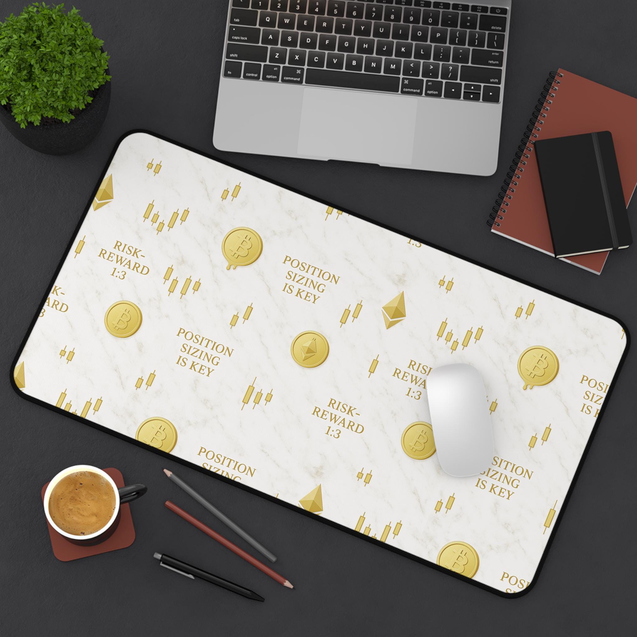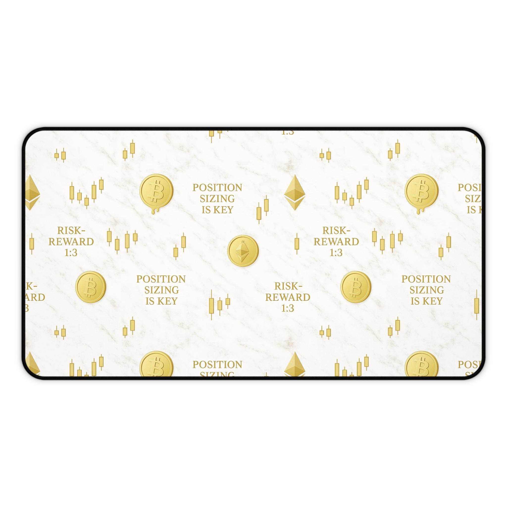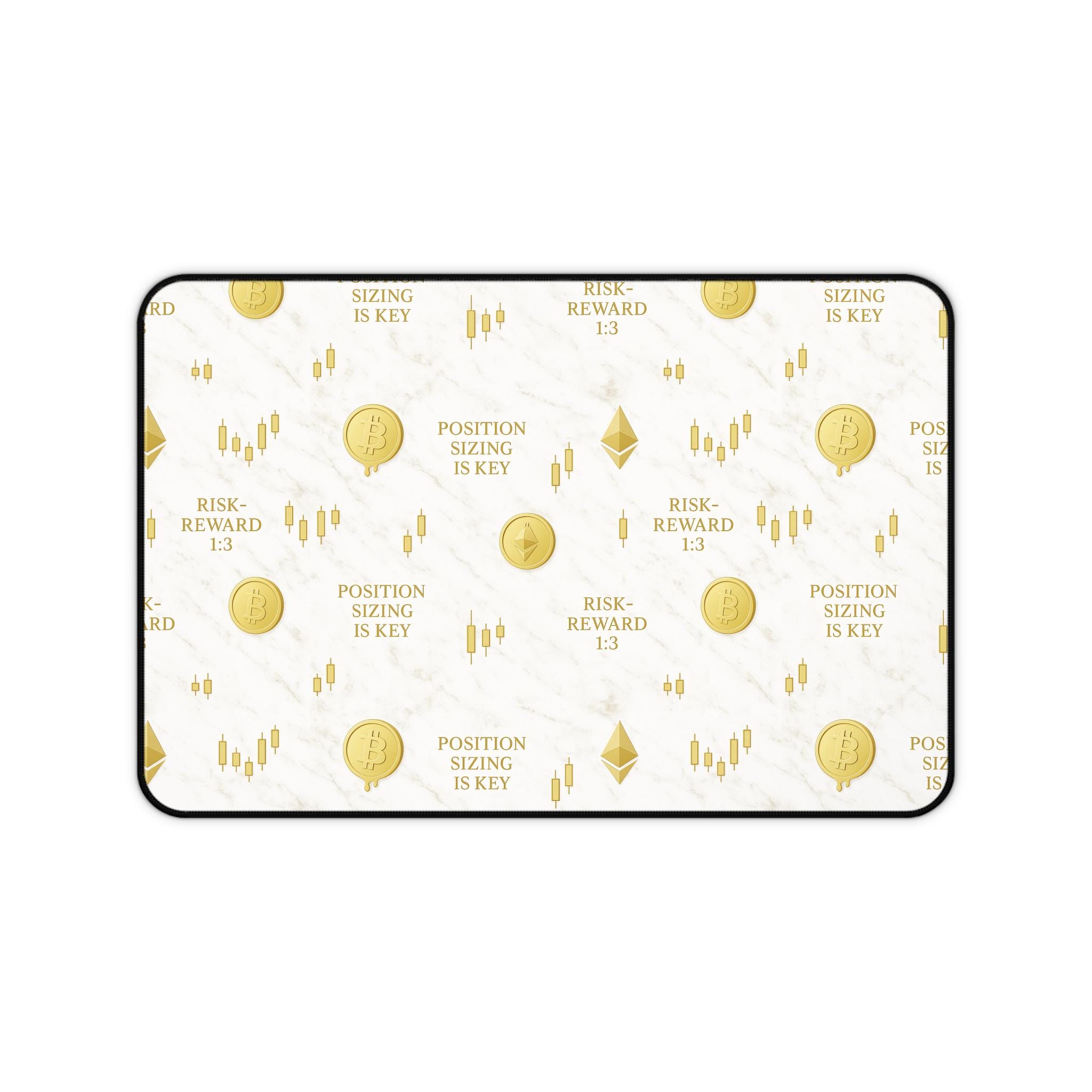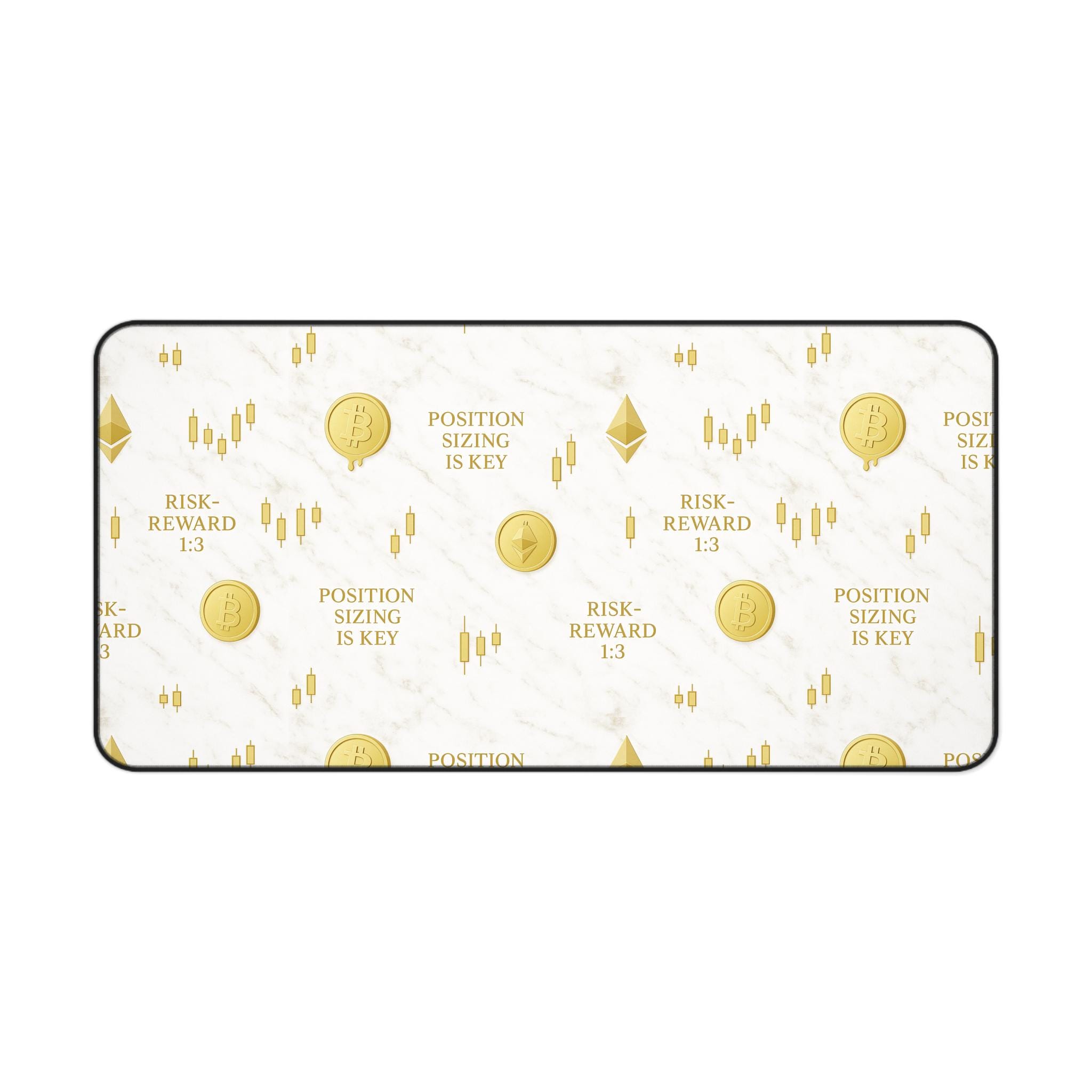 Gold Seamless Crypto Pattern Desk Mat | Bitcoin Ethereum Mouse Pad, Risk Reward Position Sizing
