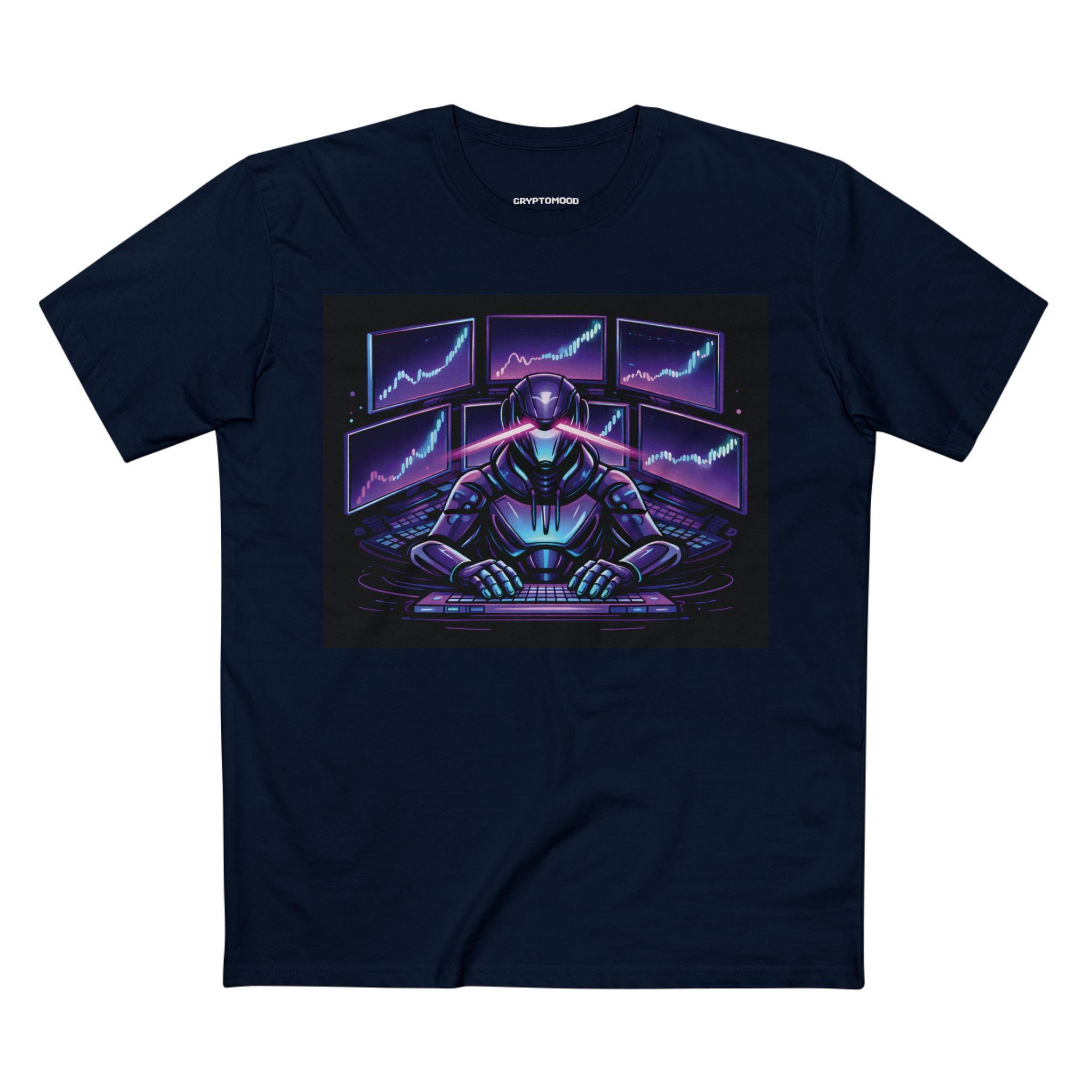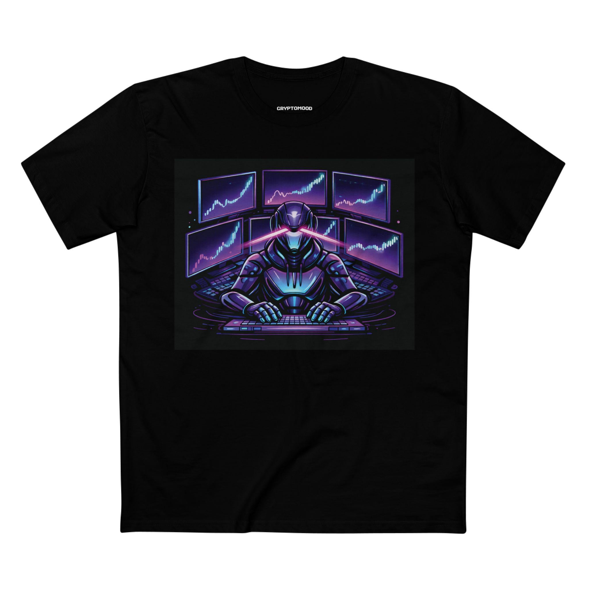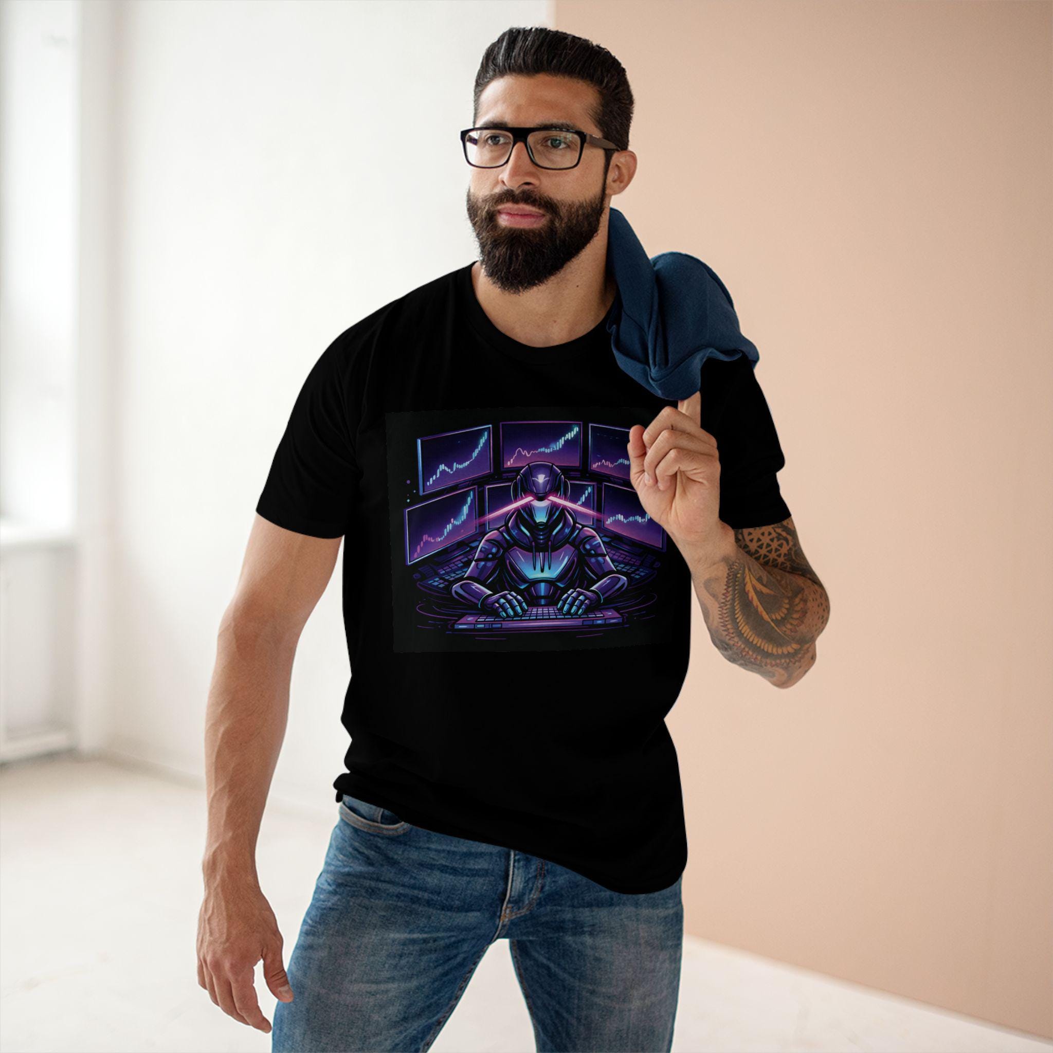 Cyber Trader Robot Tee | Neon Stock Market Charts, Futuristic Gamer Design