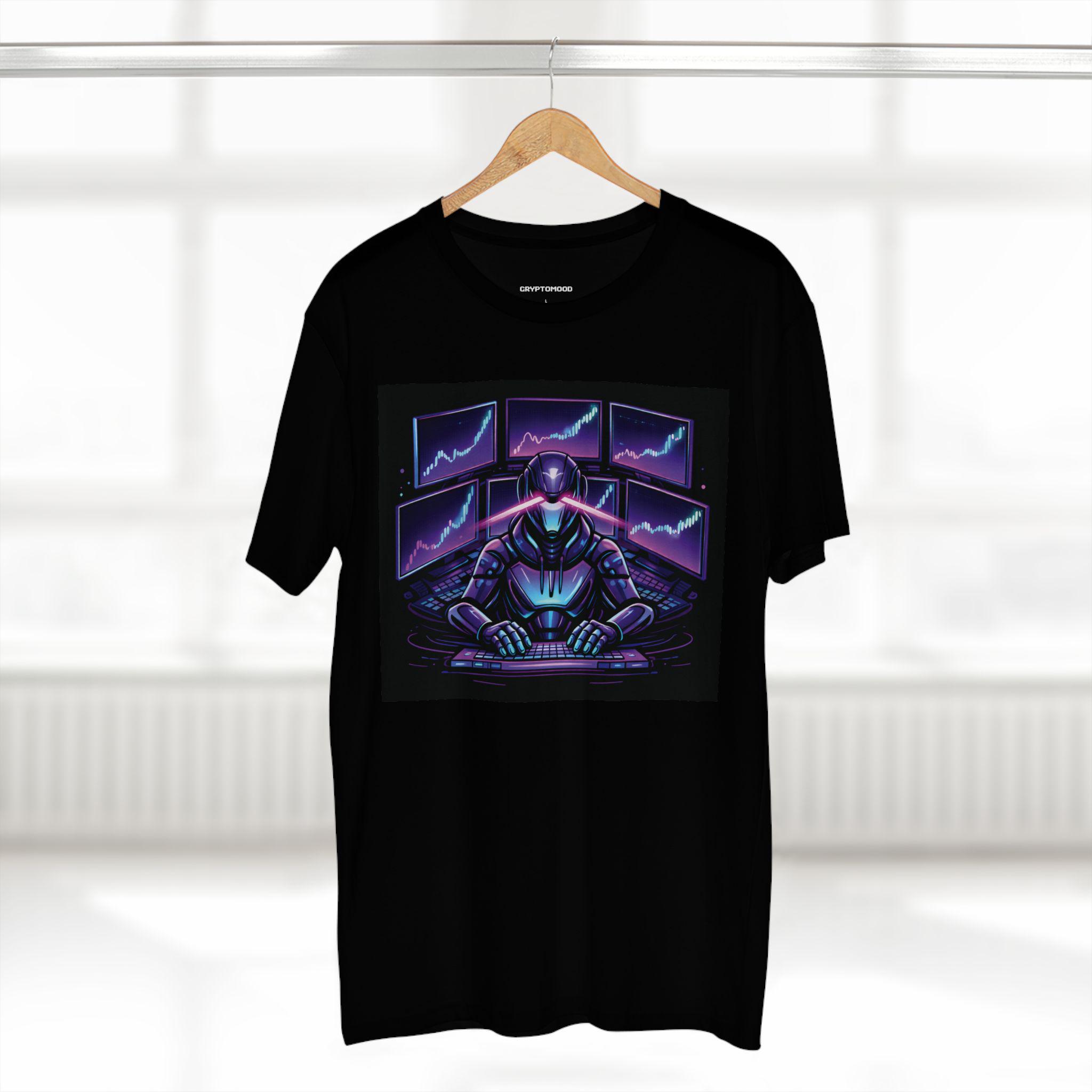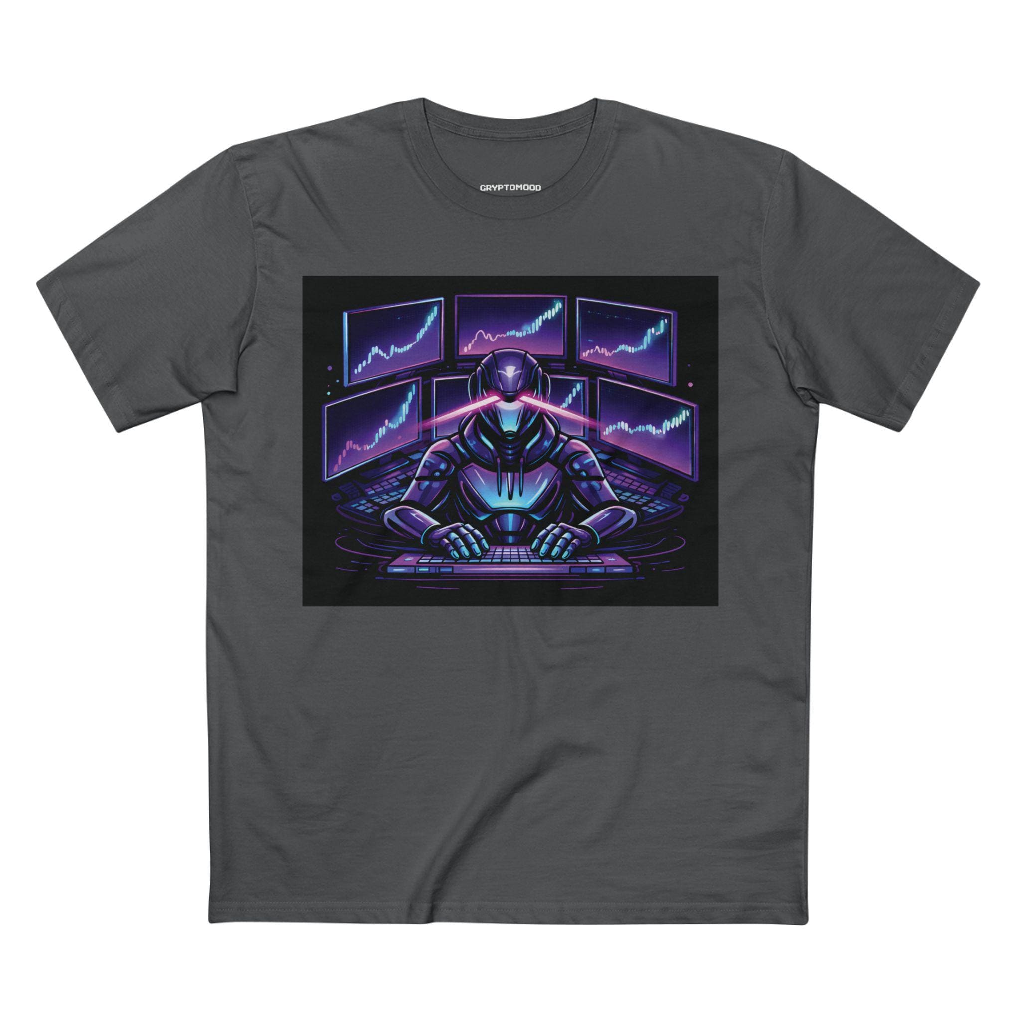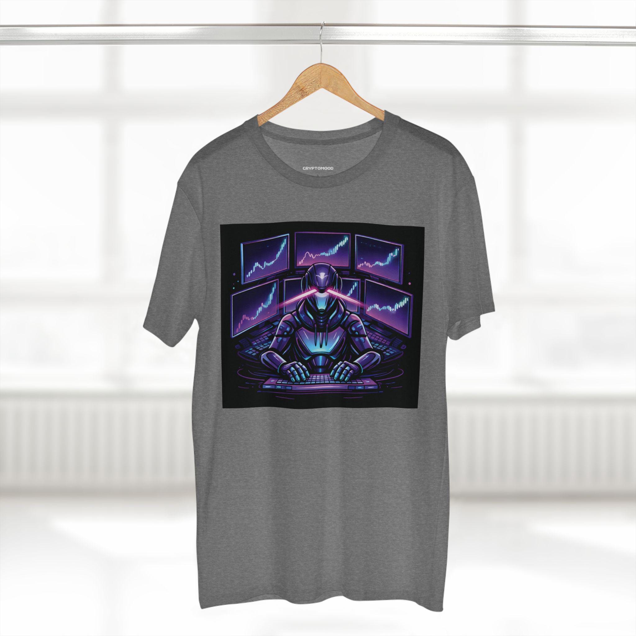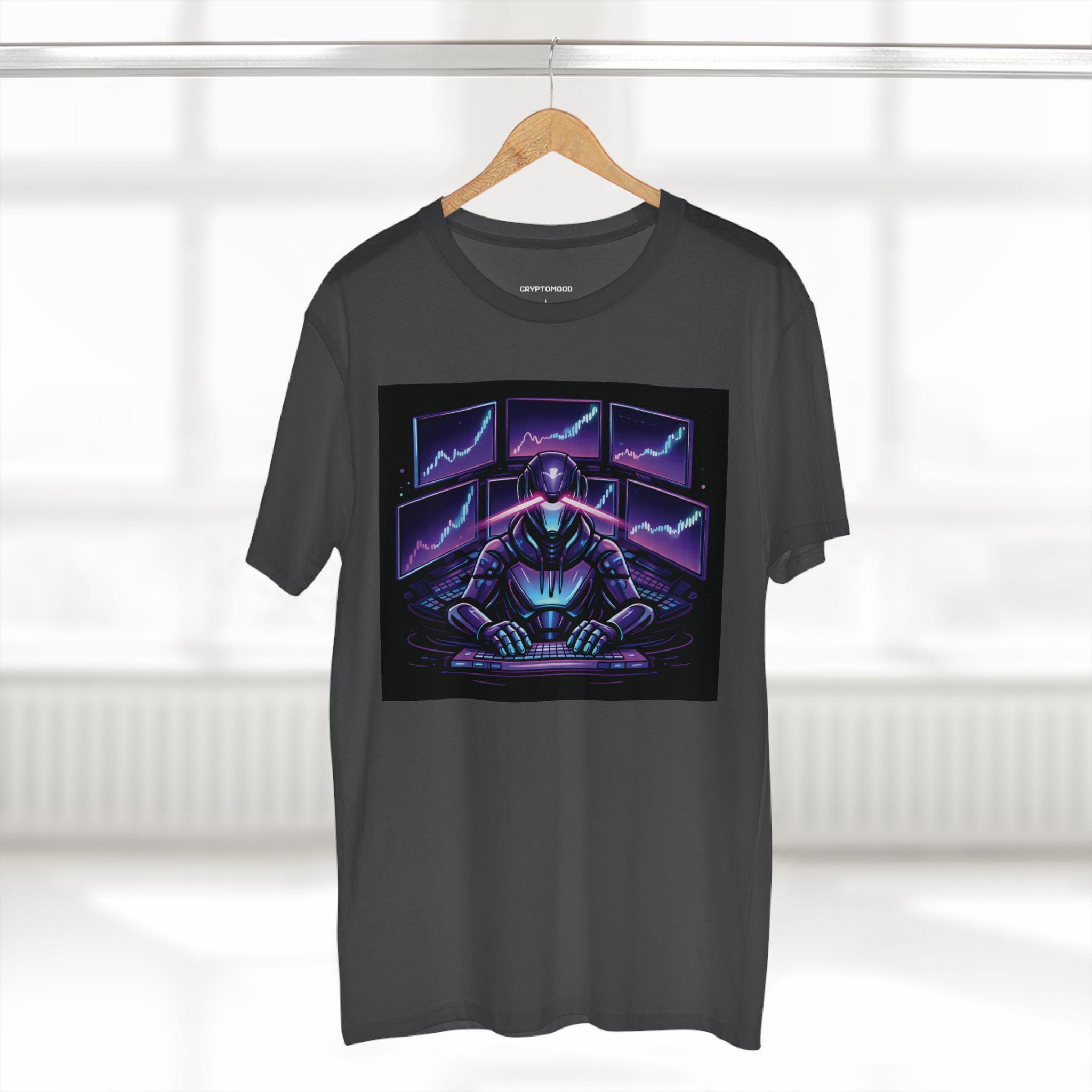 Cyber Trader Robot Tee | Neon Stock Market Charts, Futuristic Gamer Design
